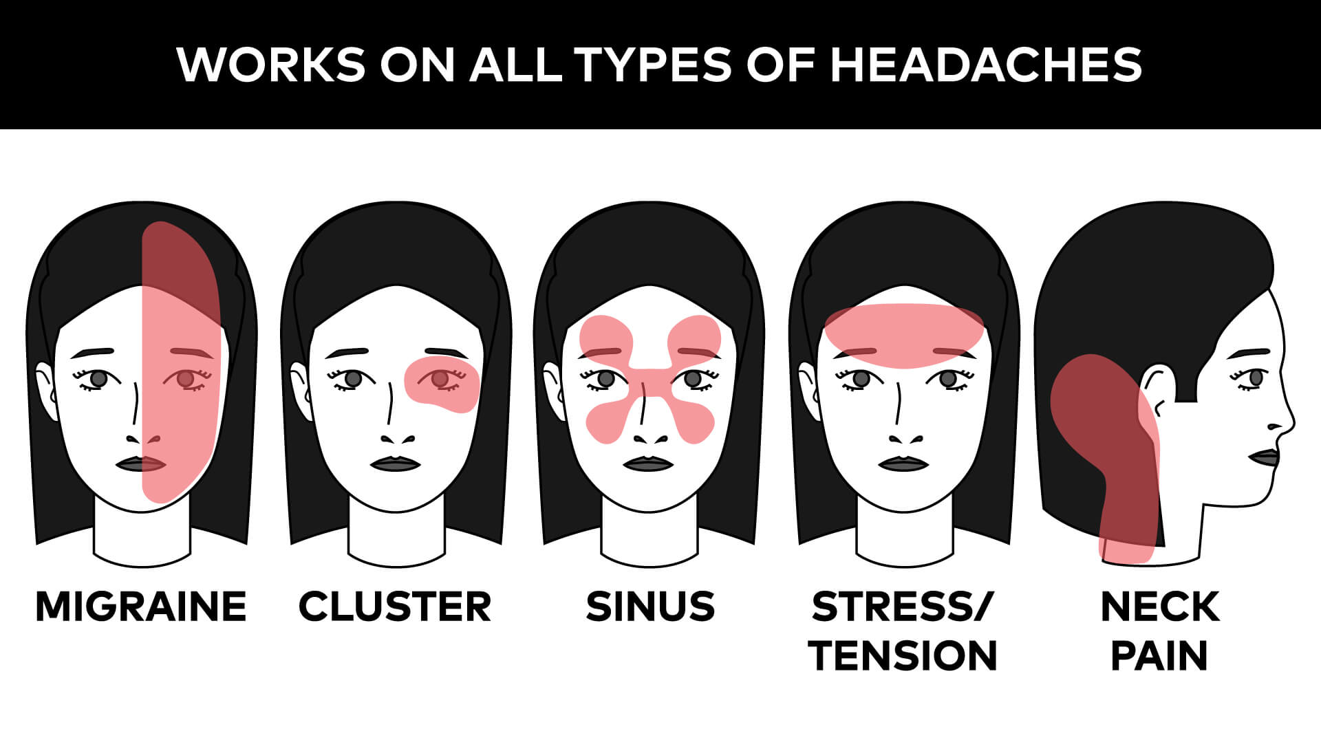 ✅ Works On All Types Of Headaches (And Other Pain As Well!) The “dual therapy” technique works extremely well for any type of headache including tension, sinus, cluster, and migraines. You can also place it on your neck, shoulders, eyes, and more to quickly soothe other aches and pains.