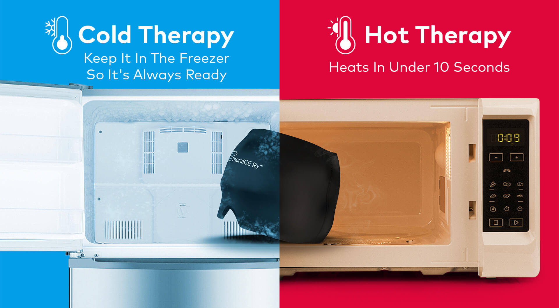 ✅ Why It Works TheraICE relieves pain in two ways: by using compression and cold therapy to constrict blood vessels and reduce inflammation, helping mute the signal of pain to your brain – or by using heat therapy to relax your muscles and ease tension, melting you into relaxation and comfort.